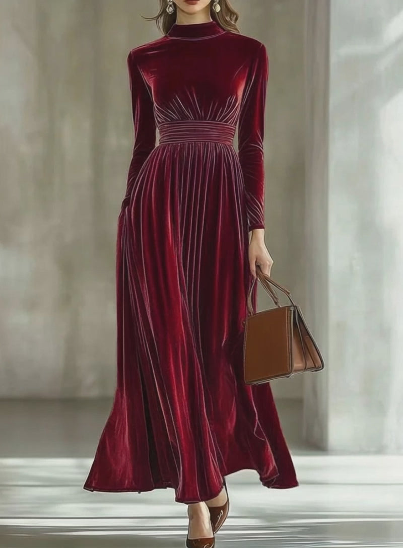 The high neck, long sleeves, and cinched waist create a refined hourglass shape, while the flowing skirt moves gracefully with every step. Whether you’re attending a Christmas dinner, a formal gala, or a winter wedding, this dress brings timeless elegance to any occasion.