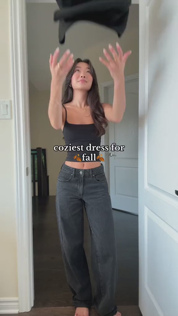 The asymmetrical neckline adds a modern and feminine touch, while the long sleeves and full-length design make it perfect for cooler days or evening occasions.
