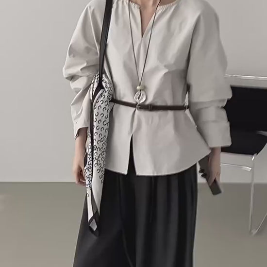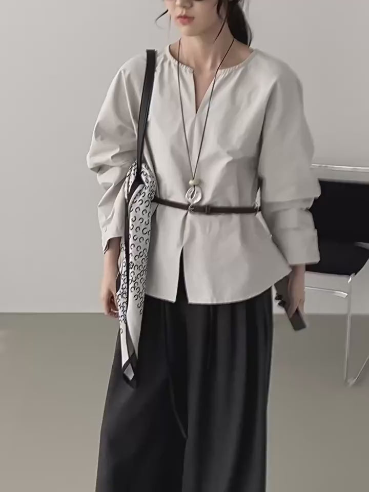 Effortless style meets everyday comfort with this minimalist long-sleeve blouse. Designed with a clean V-slit neckline and a relaxed silhouette, it’s the perfect piece to elevate both casual and refined outfits. The lightweight fabric drapes beautifully, while the adjustable belt allows you to define the waist for a more tailored look.